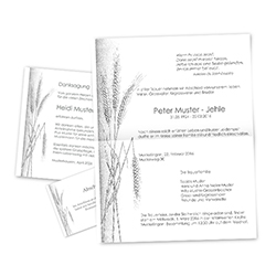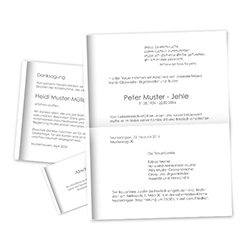 Leidzirkulare als Doppelbogen mit verschiedenen Sujets ein- und mehrfarbig Beim Artikel können Sie wählen, ob Sie passende Kuverts benötigen. Die passende Kuverts sind auch separat erhältlich. Im Preis enthalten ist die Satzherstellung anhand Ihres Manuskripts und das Einholen des Gut zum Drucks per E-Mail.